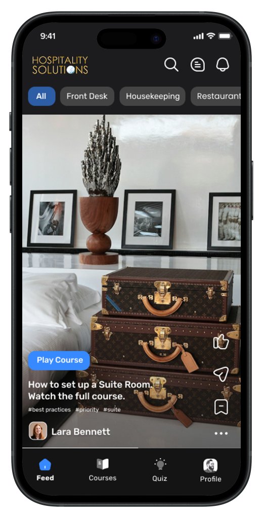 Whether you run a boutique hotel, a luxury resort, short lets, or a cruise ship – the Hospitality Academy App is the fastest, smartest way to on-board, up-skill and engage your people.
